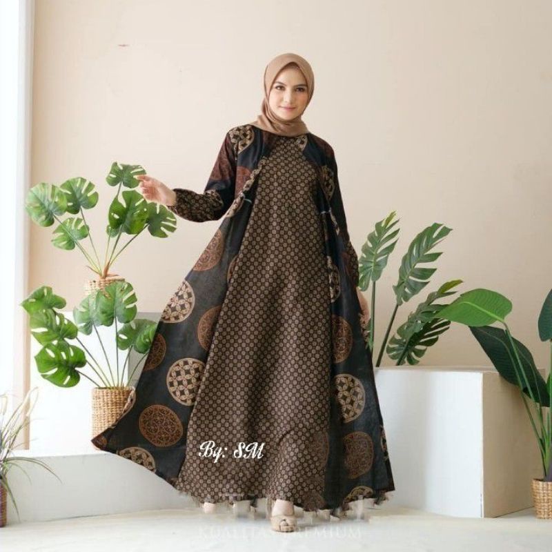 Baju gamis wanita berhijab bahan batik solo motif elegan kombinasi kain .